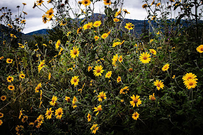 After a very soggy rainy season that began in mid-May, the landscape around San Miguel is instead putting on the biggest and gaudiest display of flowers and greenery of the entire year. Bright-yellow flowers, three or four inches across, rise above their neighbors atop stems that reach six feet or more. The flowers must number in the hundreds of thousands, probably millions, if only someone could actually count them. On some stretches of the road to San Miguel, both sides are lined with these yellow marvels that inch right up to the edge of the pavement, as if ready to leap to the other side.