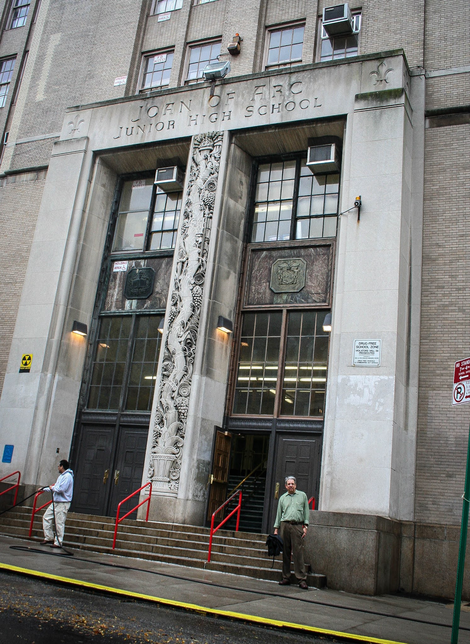 Shortly after my arrival, I was enrolled at the nearby public Joan of Arc Junior High School, a gray, eight-story, bunker-like building near where I lived.