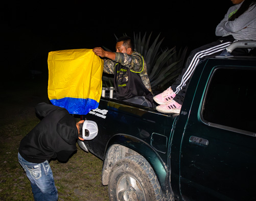 During our last day in Pátzcuaro, and suffering from a bit of balloon fever, we bought four small balloons, for about two dollars each, to mount our own show at the ranch. Perhaps Félix and his kids would like to participate. Nothing to fear: All five showed up promptly at sunset Sunday. With the bed of Félix pickup serving as a launching pad, the balloons went up about twenty or thirty feet but then drifted listlessly over the neighbors’ ranches. No matter. Everyone seemed to have a good time anyway—including us.
