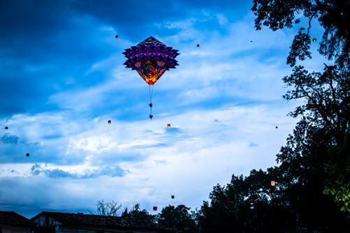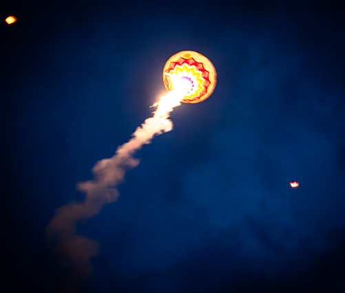 The ascents were sometimes majestic and self-assured, other times disastrous as the balloons veered off in unexpected directions or became tangled in a tree and simply burned up. In one case I witnessed a homemade balloon go up about ten feet, hesitate briefly, and then bounce off the pavement and rise again. Never give up.