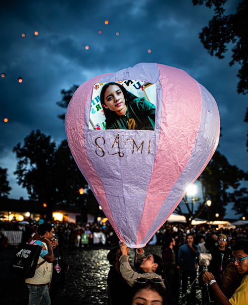 There were some sad notes. One family brought a balloon memorializing Sami, a young daughter who had died recently. The ten-foot balloon featuring a photo of Sami was reluctant to rise and when it did crashed into one of the trees, as a dismayed sister looked on.